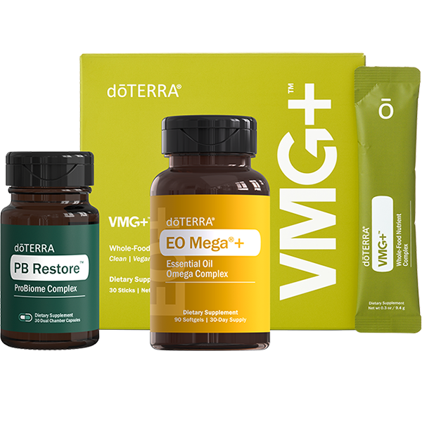 With VMG+, EO Mega+, and doTERRA PB Restore, the Foundational Wellness Bundle helps you create a daily routine that lays solid groundwork for a successful future when it comes to your wellness.